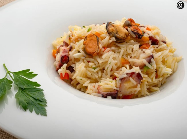 Sirve la ensalada marinera de arroz